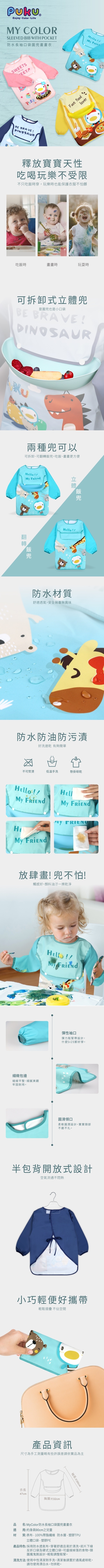 Puku My Color 防水長袖圍兜畫畫衣 - 甜點粉