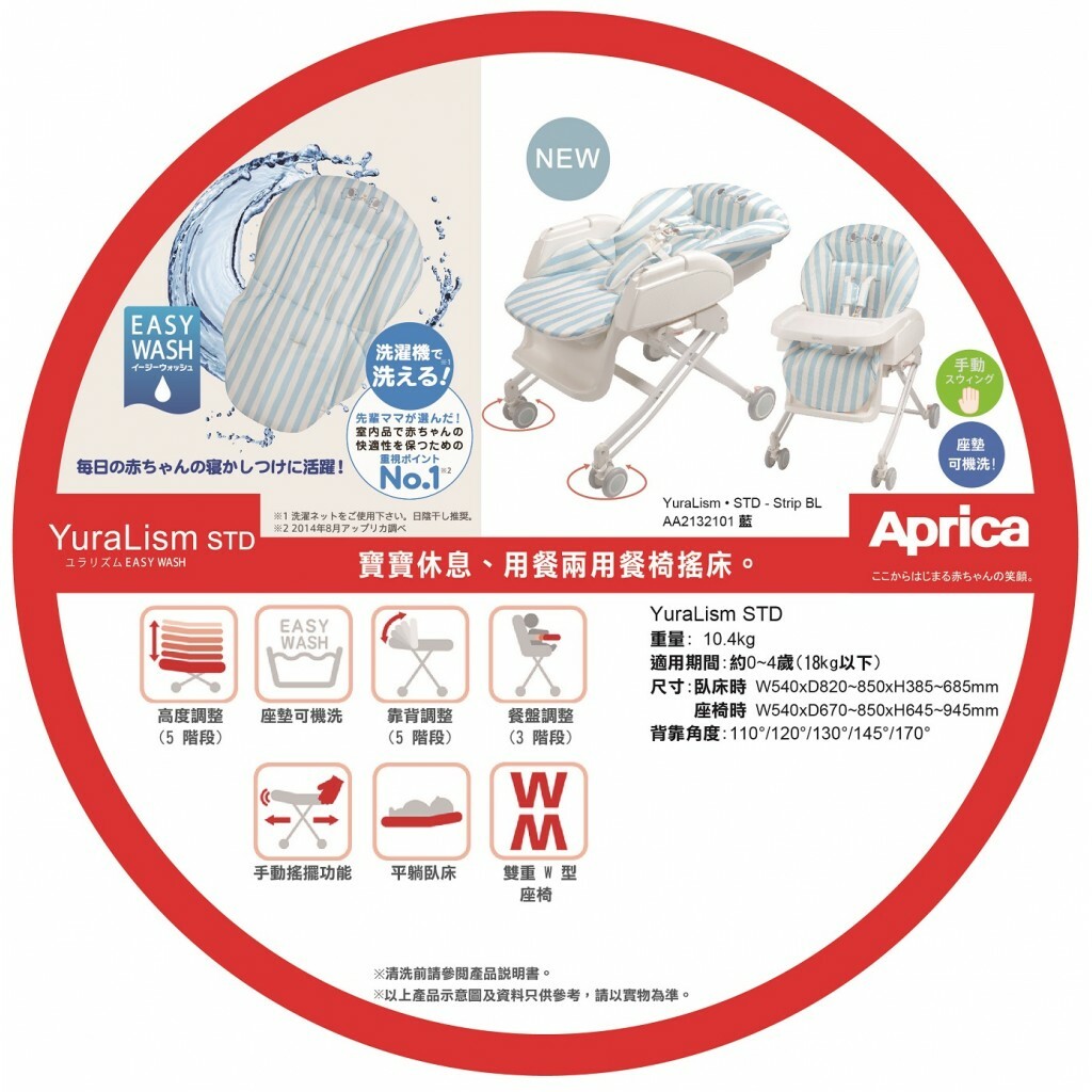 Aprica Yuralism STD 高低調節搖擺餐搖床椅 – 藍白條紋
