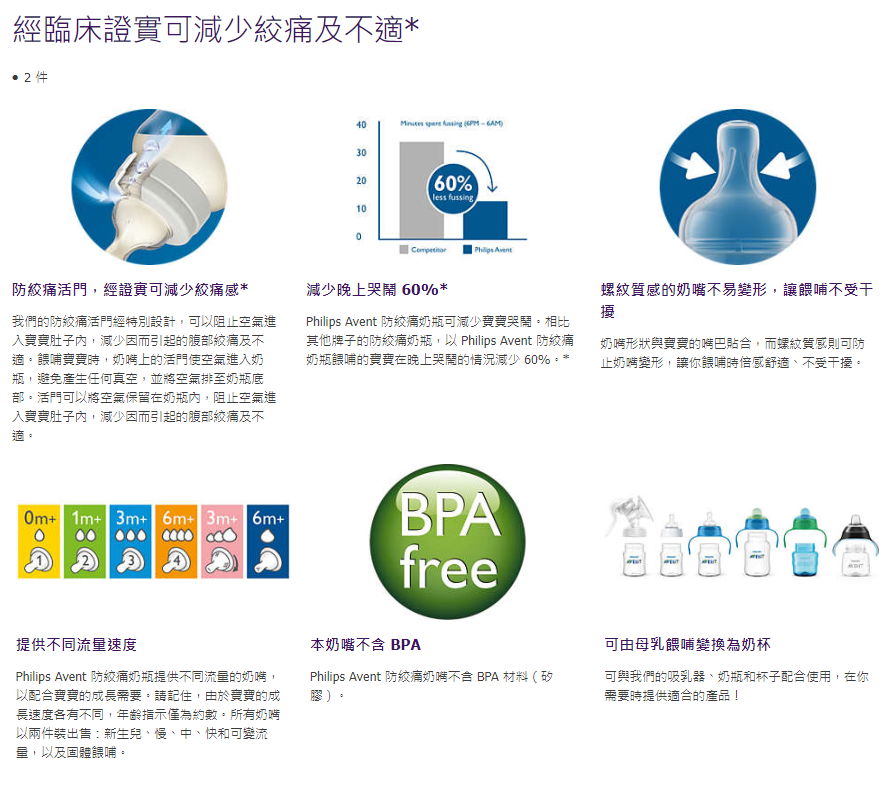 我們的防絞痛奶嘴專為無間斷餵哺而設計。空氣會排進奶瓶,而非寶寶的胃部。螺紋質感可防止奶嘴變形,並減少餵哺中斷和寶寶不適。