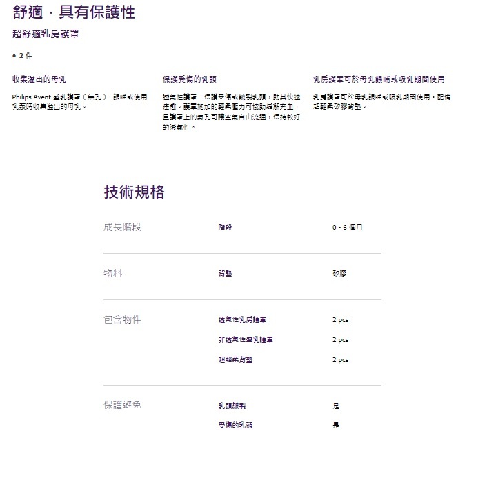 這種超柔軟 Philips Avent 乳房護罩 SCF157/02 佩戴在乳罩的內側,可對乳頭提供保護作用,避免乳頭受傷,還可收集溢出的母乳。