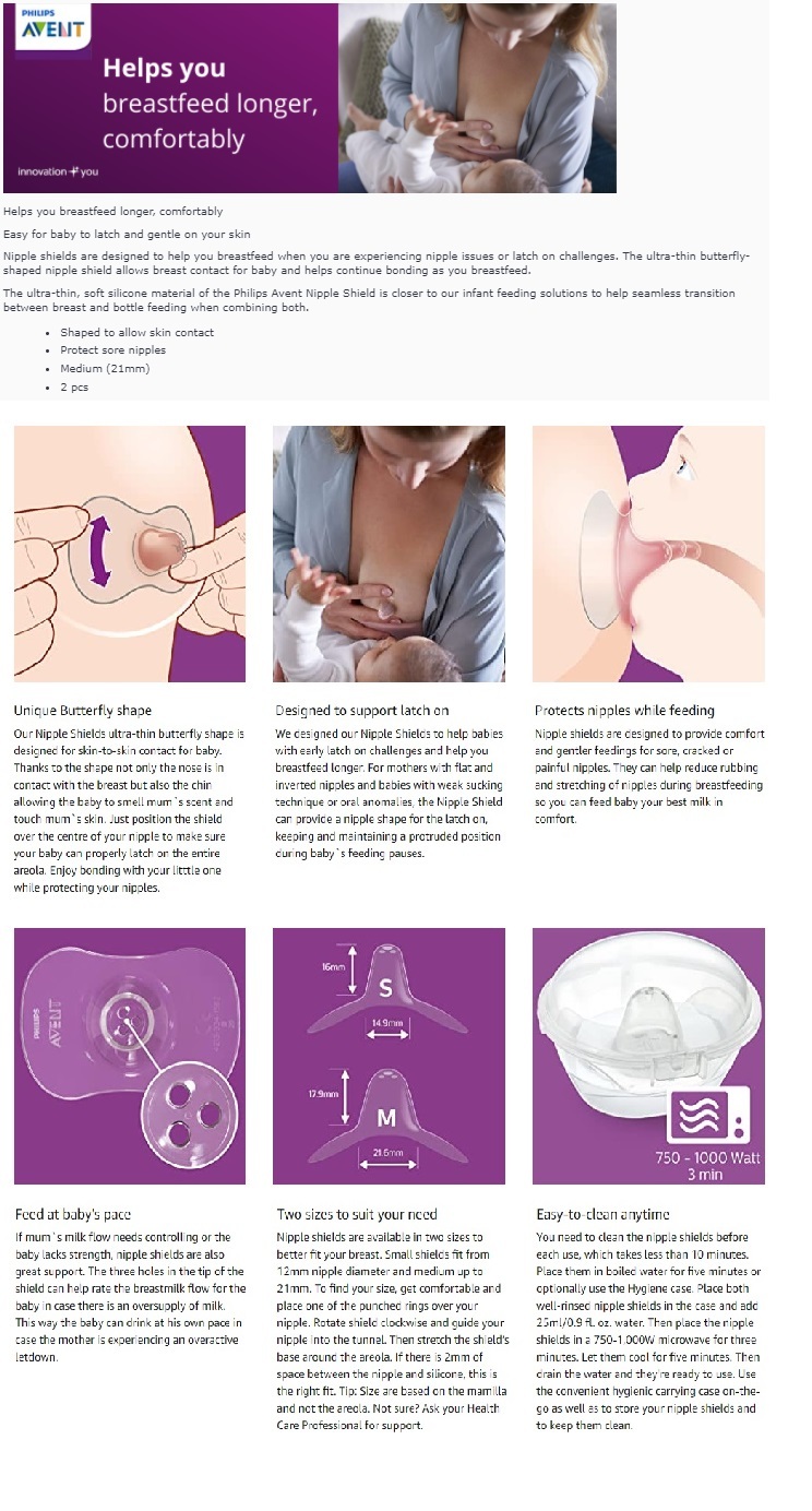 乳頭盾經過專門設計,幫助您在哺乳時可保護乳頭, 防止寶寶咬傷。蝴蝶形狀設計的超薄乳頭盾讓寶寶可以接觸乳頭並在您餵哺時保持吸吮。