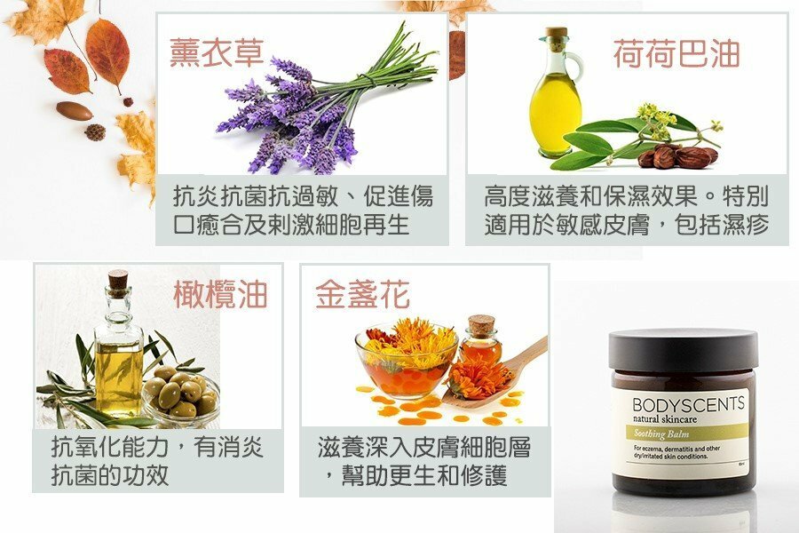 – 金盞花具有消炎同天然抗氧化嘅功效可以舒緩濕疹紅腫及痕癢