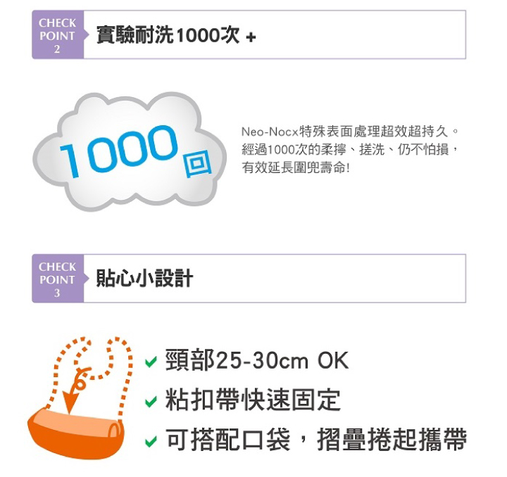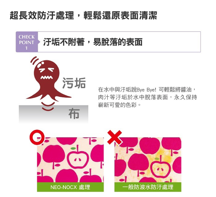 新圍兜系列添加新技術NEO-NOCX 獨特面層處理,