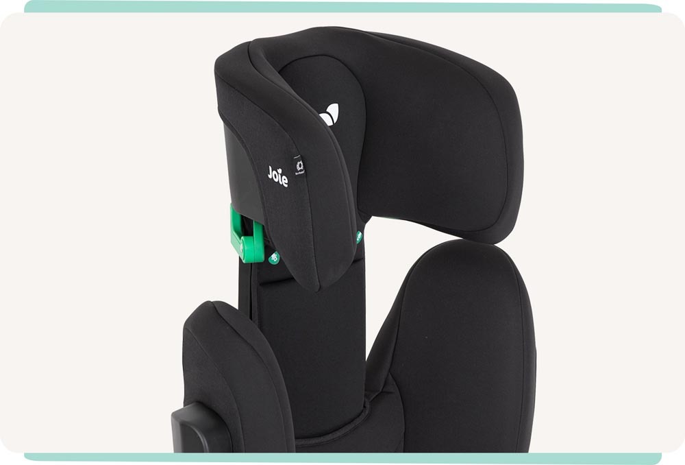– 高靠背支撐能將安全帶定位在正確位置,並提供孩子舒適的頭部支撐位置