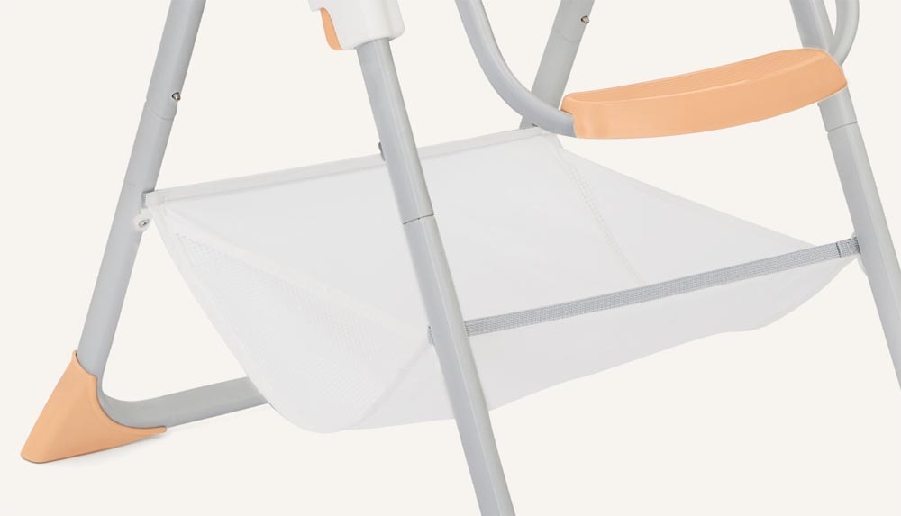 – 寬敞的儲物籃提供充足的空間,可以放置圍兜、濕巾和其他必需品,幫助您避免在用餐時間遇到困難。