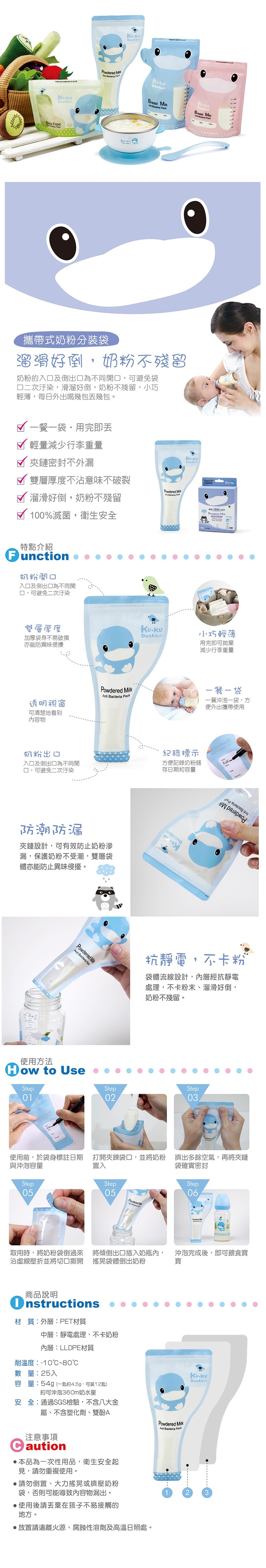 不卡奶粉─內層經抗靜電處理,流線袋形,可減少奶粉沾黏。