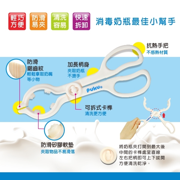 商品材質:本體材/奶瓶夾-塑膠(PP),耐溫100度C。防滑軟墊-矽膠,耐溫150度C。 商品產地:台灣 注意事項: 圖片僅供參考,商品依原廠實際供貨樣式為準。 |