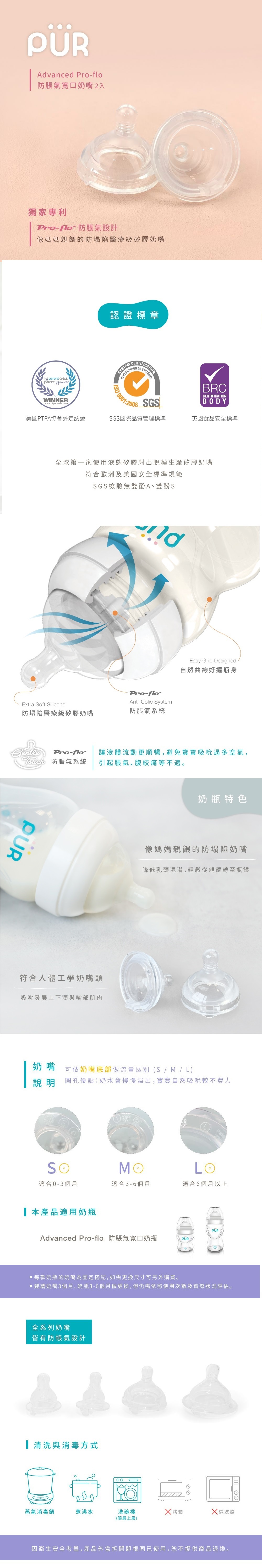 Pur Advanced Pro-flo防脹氣寬口奶瓶150ml / 250ml