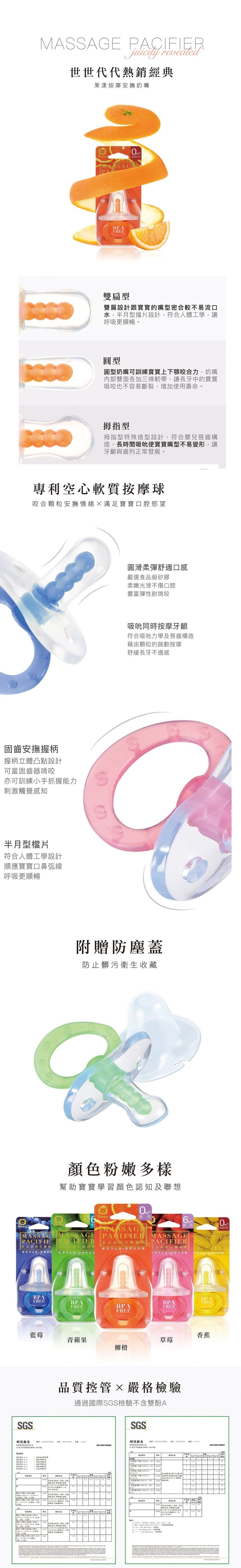 嚴選食品級活性矽膠柔軟富彈性,具有安撫奶嘴及固齒器的雙重功能,一次滿足寶寶長牙期與吸吮期的口腔慾望,三款吸嘴造型輕鬆應對寶寶多變的口感需求,繽紛色彩幫助寶寶學習顏色認知及聯想。