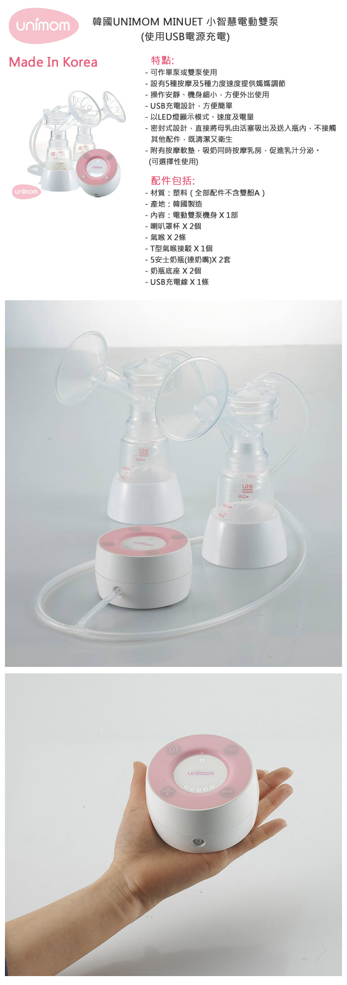 Unimom Minuet LCD 小智慧電動雙泵 (使用USB電源充電)
